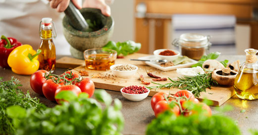 Abends Kochworkshop 'Kochen mit ayurvedischen Kräutern und Gewürzen'.